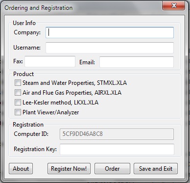 Before ordering your registration key, please make sure that everything works on your computer. Many functions of Thermo Utilities v3.5 should work even if you do not have a registration key. If there is any problem, do not hesitate to contact us. We solve all the problems, before you order our product. When you order you will receive your registration key that enables all the functions. > It is not possible to transfer the registration key from one computer to other. If you wish to order your registration key, please run the program "C:\THERMOXL\register.exe" and: