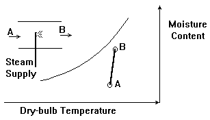 Steam can be directly injected to air stream for air conditioning purposes. In this process, all the latent heat necessary for evaporation of water is added outside the air stream. The supply of water vapor increases the enthalpy of the air. The temperature increase in this process is negligible and it can be assumed as an isothermal process with good approximation. Load on humidifier is: